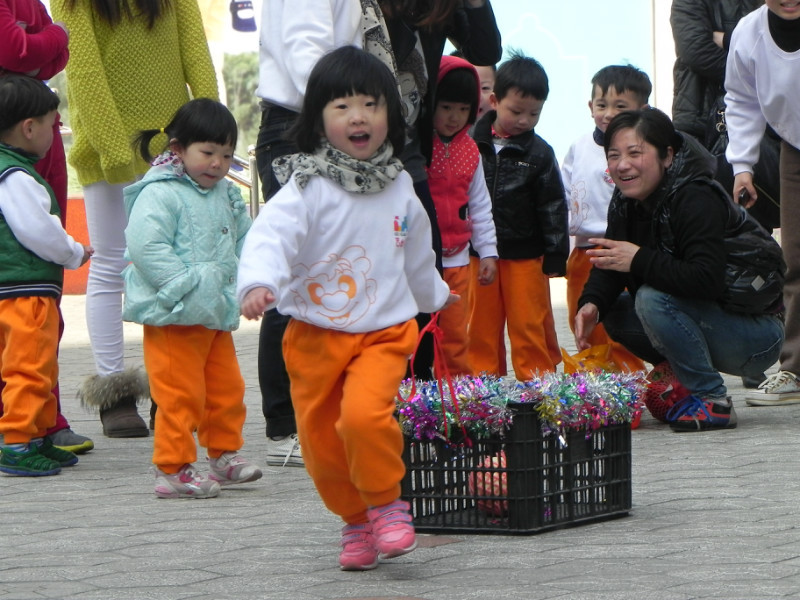 随着运动会的不断推进,《扭扭车大战》、《小马过河》、《农民伯伯运水果》、《跳跳乐》、《爸妈齐努力》等项目一个个亮相,场上的选手们争分夺秒认真比赛,场下的啦啦队热情鼓舞欢呼呐喊,别看小班孩子年龄小,个个都是运动小健将,活力小宝贝,趣味十足的亲子游戏,幽默诙谐的动作让人忍俊不禁,家长手中的照相机、摄像机频频闪动,唯恐漏下了某个精彩瞬间。 比赛环节一个接着一个,加油声、呐喊声、欢呼声沸腾了整个运动场。