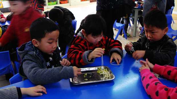 此次家长助教活动邀请了妮妮小朋友的妈妈--钱老师来为大家开展了《好吃的豆芽》这一健康活动,首先,钱老师亲自操作让幼儿知道如何进行水培豆芽,在培育过程中需要哪些材料和器皿。之后通过图片的展示让幼儿了解妮妮她们家中已培育好的豆芽菜的生长过程,并带领孩子学习区分了黄豆芽和绿豆芽。最后钱老师亲自下厨,烹制黄豆芽和绿豆芽,让小朋友尝一尝豆芽菜的美味。在品尝时钱老师还告诉小朋友豆芽菜含有丰富的维生素C,可以预防口腔溃疡,可以清除血管壁中的垃圾。绿豆芽中还有丰富的膳食纤维,可以清理我们的肠道,保护我们肠道健康。孩子们听了吃得可欢啦!边吃边说:“今天的豆芽菜真好吃”!连平时不太喜欢吃素菜的孩子都说:“我喜欢吃豆芽菜啦”!
