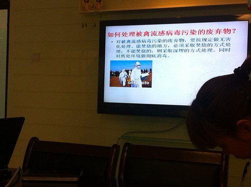 最近,全国发现多个感染“H7N9禽流感病毒”的病例,个别学校还发生了甲型H1N1流感、肠道传染病等疫情,为切实做好学校防控工作,保障孩子的身体健康,4月11日中午在保健老师的组织下,班级老师系统地学习了禽流感的传播途径以及预防禽流感的知识。