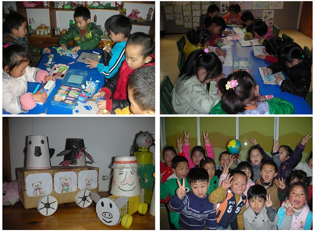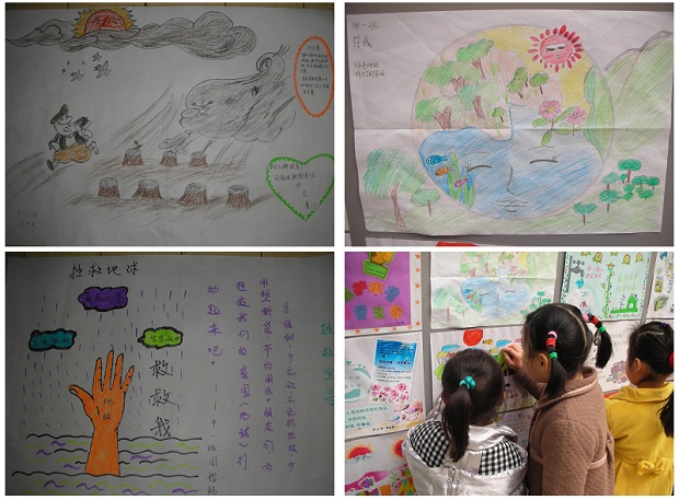 同时,我们将此活动渗透到一日活动的各个方面、如:节约用水、垃圾入篓、垃圾分类、打扫教室等等,并在班级中评选出“绿色环保小卫士”,鼓励大家用实际行动参与到“保护地球”的活动中。