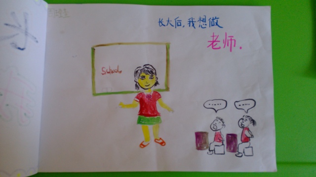 在创作前,老师和小朋友们围坐在一起,讨论了每个人的理想,长大了想做什么样的职业。有的想做一名医生,可以为爸爸妈妈看病;有的想做一名画家,画出自己美好的创意;还有的想做一名歌唱家,把动听的音乐带给每一个人。带着这样一份份美好的愿望,小朋友们用彩色的画笔画出了一幅幅充满童趣的图画,也展现出了他们无限的创意。老师将画好的画整理成册,编成了一本新的绘本——《长大了,我想做……》,让整个活动圆满成功!