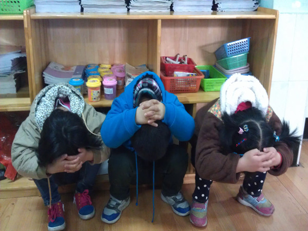 9点30分,随着“警报”拉响,在教室里进行日常活动的孩子们立刻进行紧急疏散。在老师的带领下,各班快速有序地跑向操场,空地等安全地带,双手抱头蹲下。整个过程只有12秒的时间,来不及跑出去的孩子们也在老师的引导下,纷纷选择柜子、厕所管道等地方进行躲避。“抱头”、“闭眼”、“蹲下”,老师们不时的提醒着孩子们。活动结束,老师对本次演习进行了总结,找出存在的问题及不足,并对今后的逃生演练活动提出了新的要求。