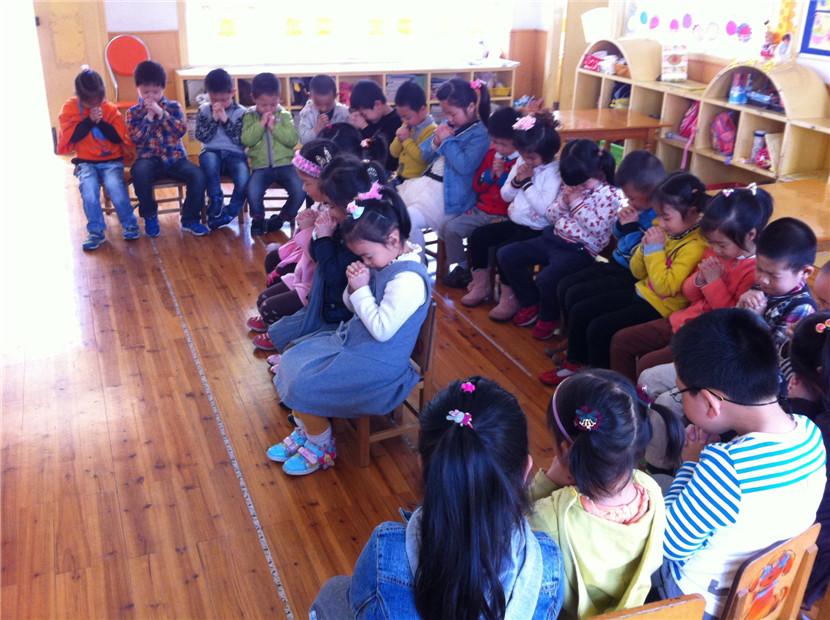 在教师为小朋友讲解了雅安地震的相关情况、观看了地震的新闻视频之后,小朋友们安静地低下头,双手食指相扣,放于胸前,默默地为那些逝去的生命哀悼,为雅安人民祈福,祈求他们平安。乐乐小朋友还为四川雅安的小朋友们画了一幅画,希望他们能够平安、快乐的成长。孩子们一个个简单的愿望蕴含着他们对灾区小朋友的深深祝福。