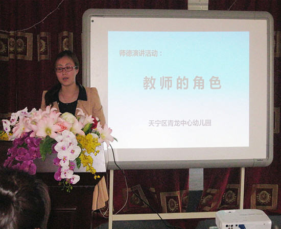 会议一开始,郁群老师就对活动背景进行了简要说明,每位老师将自己对教师角色的定位以文字的形式展示在题板上,随后教师对角色的定位阐述了自己的观点,在各位教师声情并茂地演讲中结束了活动。