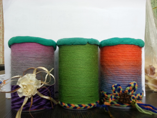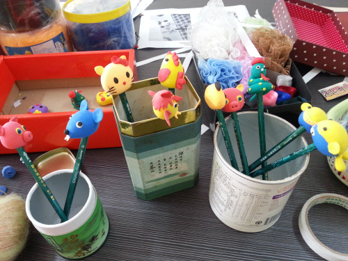 瞧,一个个发卡、笔筒、泥工就做好了,各种各样的款式,各有各的特点。
