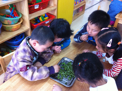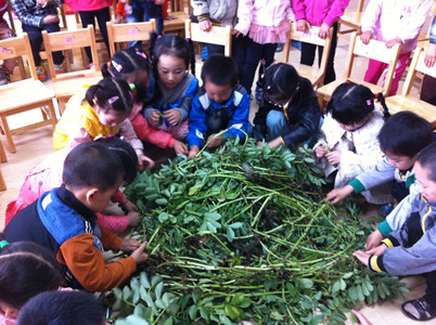 蚕豆香收获忙,这些蚕豆是去年秋冬季节,师生共同播种的,现在正是蚕豆丰收的季节。孩子们在老师的带领下,来到了种植园地里,个个兴高采烈采地摘蚕豆。“这是我种的蚕豆”、“我的蚕豆长得最大!”、“我采的蚕豆最多!”整个活动欢声笑语不断。采摘完毕,孩子们带着收获的果实,来到了教室。老师引导幼儿“看、摸、闻”,观察蚕豆的外形特点;再通过“剥一剥”让孩子们更加清楚地了解了蚕豆的内部结构。最