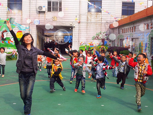 五月的鲜花遍满大地,朝幼的孩子笑脸满园。瞧!他们正在快乐地放飞自己的梦想呢!