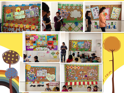 各班老师分别向其他班级的老师们介绍了走廊创意区、主题墙、语言区、自然角、数学区、建构区、评比区、美术区、音乐区等有关五大领域的区域环境创设。老师们根据不同年龄段孩子能力的大小,对区域环境的设计也各不相同。