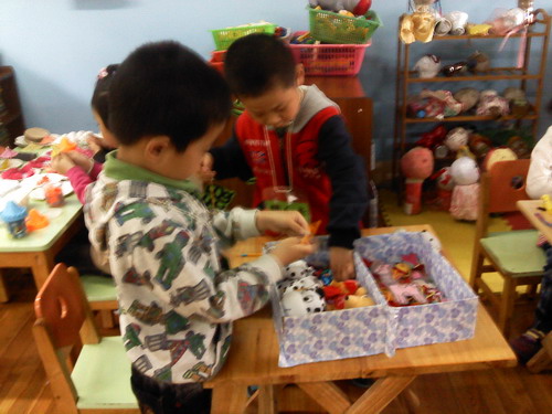 在活动中,老师们畅所欲言,有的老师说:“开展好区域活动就要让让幼儿在活动中充分表现自己的能力,为幼儿创设一个良好的区域环境,”有的老师说:“为幼儿提供丰富多样的区域材料。”还有的老师说:“在活动中除了观察幼儿的活动情况外,教师还应适时地指导幼儿等等,”其实 只要树立正确的区域活动理念,认真组织好每一次的区域活动,及时捕捉幼儿的兴趣、需要,创新适合本班幼的区域活动,活动中根据幼儿的个别差异,因材施教,就会看到我们每位孩子全面和谐的发展。