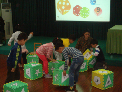 “教育是有目的、有计划引导幼儿主动活动的教育过程,教师的预设活动要与幼儿“学”的方式同步。”在汪红云老师执教的“翻骰子”游戏中,我们看到材料的真正教育价值,深刻的领悟到游戏的真正目的不是游戏,而是为了孩子在活动中有更深入发展与亲身的体验。教师充分利用一个拼插的泡沫骰子玩出了多样花式,通过翻颜色、单双数、最大、最小数、图形的边数等,有效帮助幼儿积累与丰富了有关数的经验。在本次思维游戏活动中,孩子对知识的理解在于活学活用,他们在有干扰、争议、竞赛的环境中仍保有清晰的数的概念,这是思维碰撞所获得的经验。