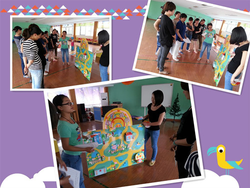 本周四,老师们带着自己的作品在多功能活动室交流学习。作品包括益智区的“机器人”、“跳舞台”,“拼图谜语”;体育区的“小球门”;综合类的“幸福小镇”、“我们的都市”;数学区的“生活中字”等。老师们轮流介绍自己的作品,说出自己的设计意图,设计思路,多种玩法。老教师们逐个提出自己的宝贵意见,让教玩具变得更加有趣、好玩。最后,老教师们为每一个作品打分,评出一二三等奖。