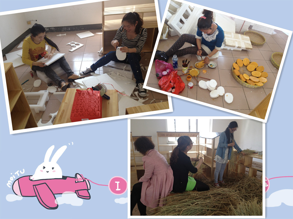为进一步发展幼儿园的特色课程,2013年5月24日,茶山中心幼儿园老师们,在园领导的组织下利用中午时间集中在一起创设具有民间特色的“民间工艺小作坊”,其中包括手工坊和美食一条街。