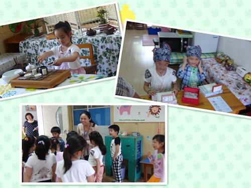 伴随着幼儿园混龄教育的深入开展,近日,我园课题组“一课三研”活动已进入高潮部分。本次课题组的“一课三研”以“春茶”为游戏题材,以创造性主题游戏为载体,采用先分龄、再混龄的不同形式分阶段开展:大班茶文化博物馆,中班老舍茶叶店,小班绿阁茶馆,集大家之智慧,在不断反思中成长、进步。每次活动后,说课—评课—反思—调整—实践—再重复,抱着“将一口井挖深,把一节课磨精”的心愿,大家同伴互助,共同提高。