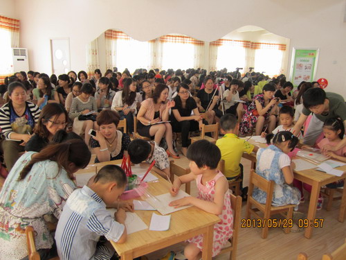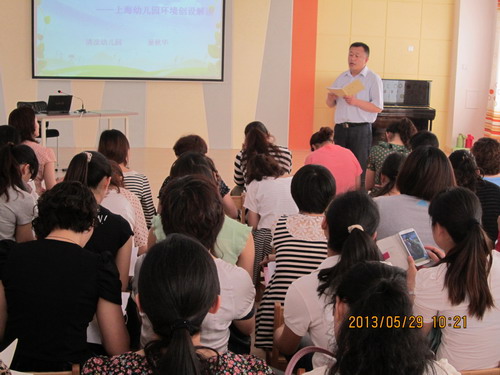 活动在陈青副科长的一番期望的话语中拉开了序幕。整个活动分为五个流程,分别是:观看专题片;观摩优秀课例;老师精彩点评;环境解读讲座;领导总结发言。一开场的“创意美术,精彩无限”专题片,把上海三所幼儿园的创意美术亮点、特色集于一体和大家分享,一下子拓展了老师们的视野,无论是美术的环境、美术的材料还是美术的空间都体现了无限创意。由实验幼儿园钱军和朝阳幼儿园王宇青两位老师展示的优秀美术活动《小土坑》和《四季花园》,使在座的的每一位老师感受到了《指南》背景下美术活动的魅力。课堂上,两位老师对每个环节的进程和各个方面的展现都做得很好,包括课堂驾驭的能力、重点难点的把握、教学指导的维度、情绪情感的激励以及范例呈现时个人的美术素养等等,达到了预期的效果。课后的活动点评,启示了老师们在美术教学中,应怎样创设趣味高效的情境、应如何选择简单有效的材料等一系列策略。清凉幼儿园