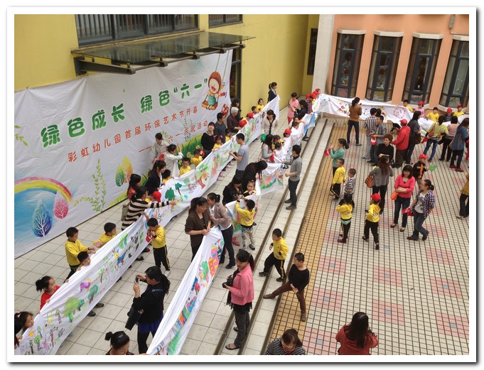 彩虹幼:绿色“六一”百米长卷亲子绘画活动