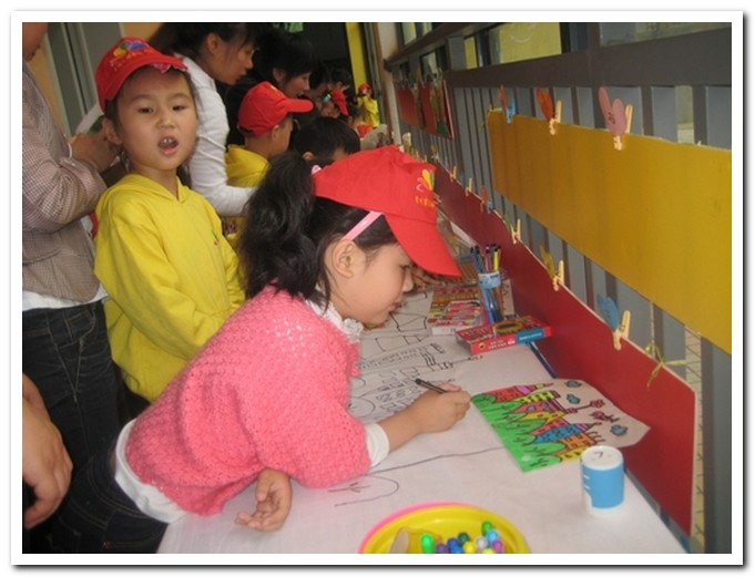 此次活动每个班都有特定的主题:大一班《同在蓝天下》、大二班《生命之水》、大三班《美丽的家园》、大四班《青青草原》。大五班《动物的家》,在清柔的音乐声中,孩子们拿着画笔兴致勃勃地投入到绘画中,很多家长也忍不住拿起画笔,和孩子一起用美丽的图画画出他们热爱地球、热爱生命、保护环境的决心。孩子们纷纷表示要爱护花草、树木,爱护每一个生命,让我们的地球更加漂亮,让我们生活的环境更加美好。通过活动,老师、家长和孩子手牵手共同努力,把我们生活的环境变得更加美好!”