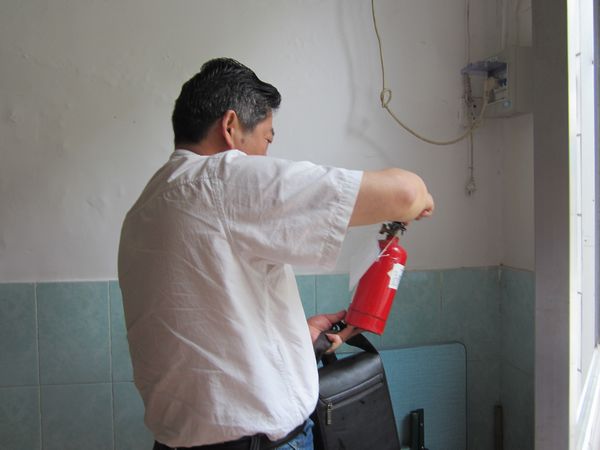 近期,区文教局校园安全督查组一行三人冒雨抽查清幼校园安全工作。在突击检查中,督查组成员首先来到食堂,仔细检查了食堂备餐间,操作间,消防器材,巡视了食堂工作人员的日常操作流程。随后,督察组又冒雨检查了整个校园场地及设施的安全,重点查看了各个部门的消防器材以及检查记录。