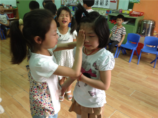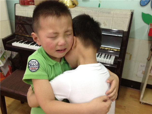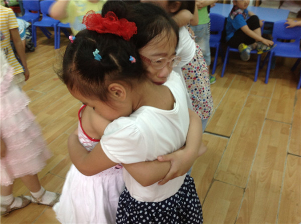 在今天的音乐课上,随着音乐《老师,再见了》响起之际,小朋友们认真的跟着老师轻轻地唱了起来,没有丝毫的马虎。小朋友似乎懂得自己即将离开这熟悉的幼儿园,离开自己的好伙伴。唱着唱着……每个人都忍不住留下了泪水,抱在了一起,你亲亲我,我亲亲你,擦干彼此的泪水。小朋友们更是舍不得自己的老师,三年来,是老师无微不至的关爱伴随他们成长。如今,孩子们已经既活泼茁壮又聪明勇敢,学会了很多本领。