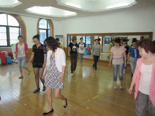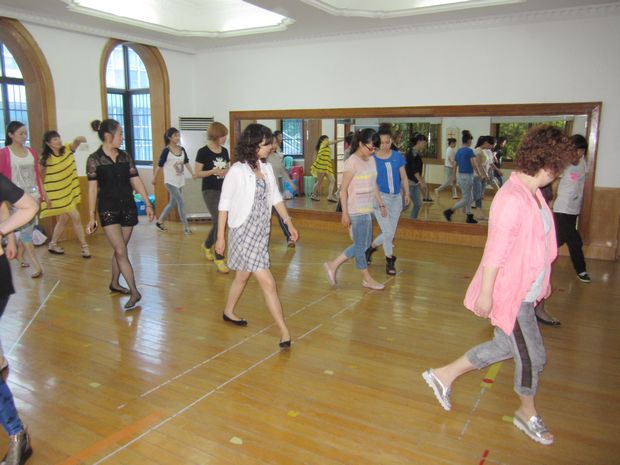 由于是第一次参加这样的活动,园领导非常重视,对场地、设备、音乐等前期做了很多准备,甚至亲自参与排练,以带动教师们的排练积极性。在排练中,教师们个个精神饱满、情绪高昂,全身心地投入到基本动作的学习中,有的教师甚至在中途休息时也在不停地练习。通过学习,几乎所有教师都掌握了八个八拍的脚步基本动作,还能跟着快节奏的音乐进行4个方位的组合性练跳。