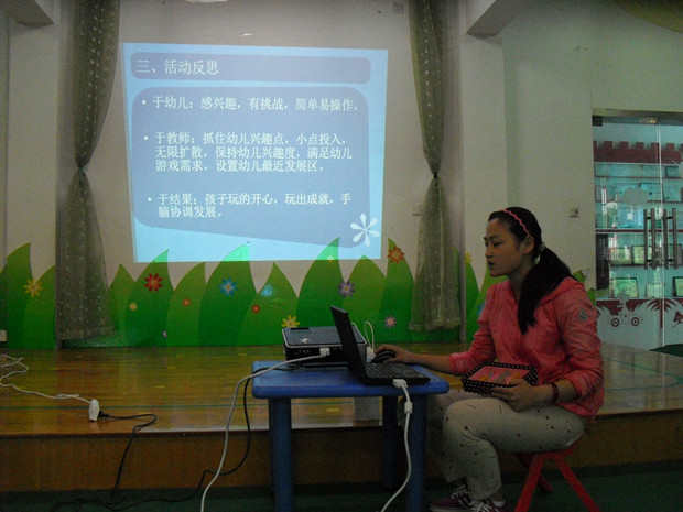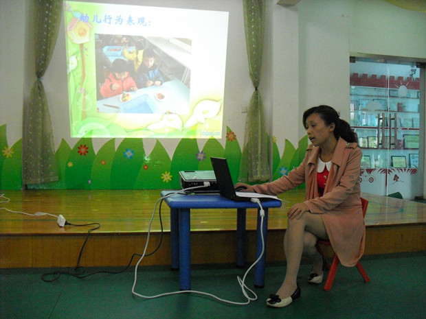 为了进一步完善我园各区域的材料与环境设置,充分利用资源,探究如何最大限度挖掘游戏活动的价值,提高区域活动的时效性与趣味性。2013年6月8日下午我园在多媒体教室开展了“我推荐的精品区域活动”交流研讨活动。