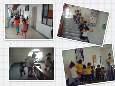 演习活动前,各班老师制作了不同主题的安全版面,提前向幼儿宣传各种安全知识,如:“着火我不怕”、“求救信号总动员”、“安全符号会说话”等。充分的准备工作为做好消防演习活动打好了基础,下午2点45分警报声传来,各个行动组迅速到位,通讯人 员观察火源发生地点并报告火情;各班教师听到信号后,迅速组织孩子用手捂住口鼻,弯下身来沿着墙面根据火源位置选择逃离通道,并在各个楼梯口和大门口疏散孩子,让孩子们迅速而镇定地离开现场,到达现场后点名,向园长报告人数。从警报响起到全体幼儿安全撤离危险地带,仅用了3分钟时间。