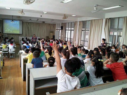 参观之前,全体幼儿在幼儿园大门集合,园领导对此次活动提出了具体要求。9点整孩子们在老师和保安的组织护送下出发了,一路上,孩子们兴奋不已,问题不断,“哥哥姐姐的教室和我们的一样吗?、她们中午也在学校睡觉吗?”……带着疑问和好奇心,我们走进了小学的大门,在学校老师的带领下,小朋友们首先来到学校电教室,与一年级的哥哥姐姐一起阅读了《逃家小兔》,体验小学生上课的感觉。领导还带领孩子们参观了校园的图书室、音乐室、电脑室、宣传栏、厕所等各处。