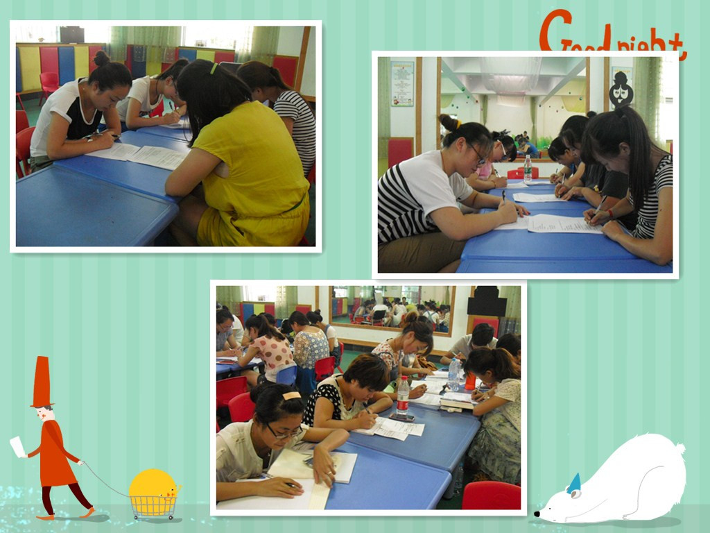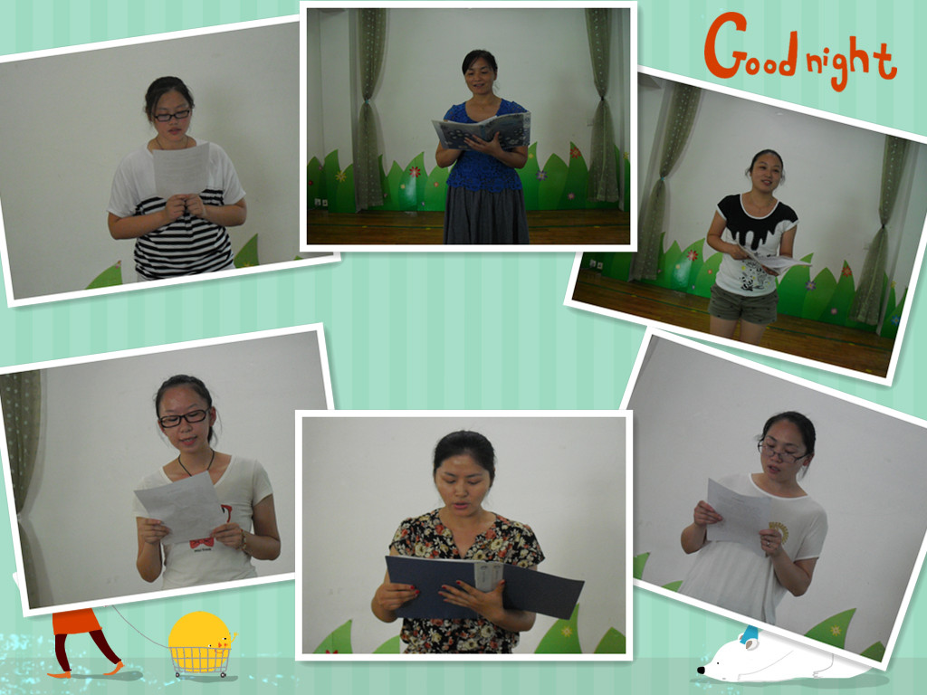 你方唱罢我登台,教师们拿出各自的看家本领。作为考核内容:案例分析、活动设计、《指南》考试、舞蹈、自弹自唱、绘画、续编故事,每一项考核都严谨而有序。我园还特意邀请了清凉幼儿园、丽华二幼、雕庄中心幼儿园的三名园长作为评委,对每一名老师的表现都进行了客观的打分。为了更好地总结活动精髓,我园六位教师作了本次师训的个人总结,分层次的阐述了自己在师训中所得的收获。最后,杨美华副园长作师训总结,她肯定了全园老师们的辛苦付出与奉献精神,提出了三个“给力”,即行政引领,组织给力;推动反思,过程给力;互动分享,效果给力。杨园长还希望全园教师带着师训的思考,带着师训的收获,在新学期勇攀新的高峰。