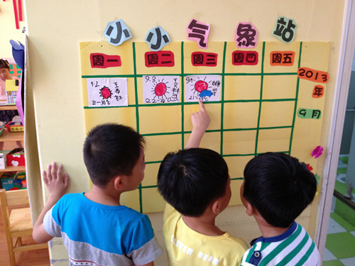 为了让孩子们了解天气预报的实际意义,认识简单的天气符号,学习记录天气,彩虹幼儿园大四班在教室一角创设了“小小气象站”区域,孩子们轮流当上了小小气象员。