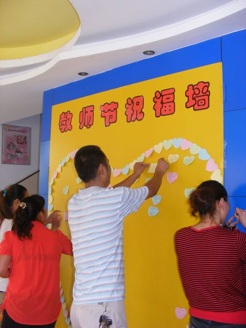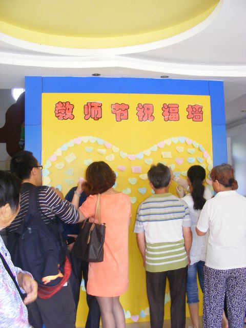 活动得到了家长的支持和配合,家长们纷纷把对老师的感谢与祝福写在小纸片上,让它化成一只只“蝴蝶”,代替礼品、代替鲜花,飞到这面充满爱的祝福墙,让全体师生与家长过一个绿色而又温馨的节日。