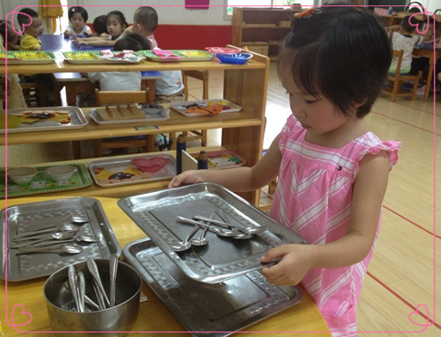 在小班的日常教学活动中,根据指南精神,结合幼儿园的蒙氏特色,我们充分相信孩子,放手给孩子参与的机会。从身边做事,从小事做起,让孩子树立自我服务意识。我们除了为孩子提供日常工作操作机会,在生活中也把握契机让孩子通过不断实践,真正领会一日生活皆学习的含义,让孩子在生活中学习,在实践中成长!