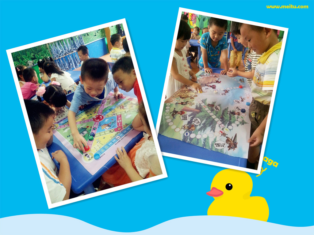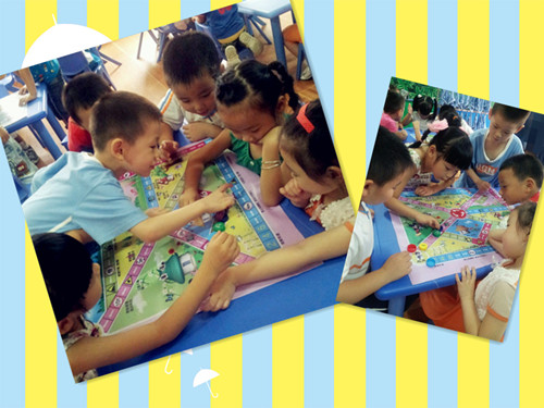 本学期我班开展了许多棋类游戏,有飞行棋、动物棋等,而最深受小朋友喜爱的还要数有故事情节的熊出没和植物大战僵尸的棋子游戏,这种棋可以有多个小朋友一起利用五颜六色的瓶盖进行游戏,这样特殊的棋子使他们玩的更有趣了。(田燕 谢菁)