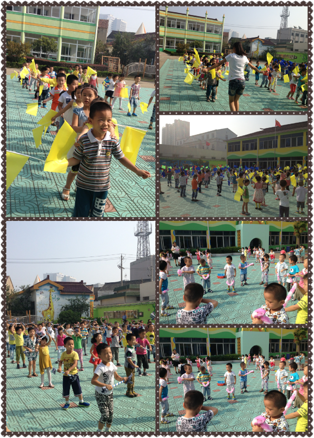 近期,在幼儿园宽阔的大操场上,出现了一道美丽的风景线。原来是茶山中心幼儿园的孩子们手拿运动器械,踏着音乐的节拍,做着民间游戏操呢!看,小班的宝宝们手拿搓背圈,在老师的带动下围成圆圈,孩子们在律动中玩起来民间游戏《木头人》,充分表现了小班小朋友的稚趣和童真;而中班的娃娃们,更是神气了,每位小朋友手拿两面彩旗,有模有样的挥舞着彩旗,踏着音乐的节拍,在律动中玩起了《老鹰抓小鸡》的游戏,展示了中班小朋友轻盈灵活的协调性;而大班的哥哥姐姐们更要做好榜样作用,小朋友们手拿棒子,在音乐声中舞动起来,民间游戏《老狼老狼几点了》《开火车》自然的融入到律动当中,更是把早间操活动推向了高潮,让整个场面成了欢乐的海洋。