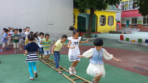 不管任何一个年龄段的孩子们,他们都很喜欢在户外参与活动,我们大班的孩子也不例外,但由于能力和经验发展上的薄弱,很多动作发展还不协调。为了锻炼孩子身体的平衡和协调能力,户外活动的时候,我带着孩子们来到体育器械“竹梯”前,引导他们通过练习走竹梯,从而提高身体的平衡能力。由于竹梯的玩法有多种,而且孩子们之前玩过的经验并不多,所以活动前我请出一名幼儿演示自己是怎么走的,而后我再给孩子们示范其他的玩法,如可以从每节竹梯中间小洞走过、也可以站在竹梯上行走等等。