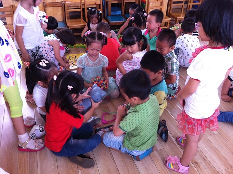 活动一开始,孩子们轮流上台介绍了自己带来的玩具,看着各种各样的玩具,孩子们情绪越来越高涨。介绍完毕,随着一声令下,就到了孩子们自己的游戏时间。看,孩子们围坐在一起,愉快地交流着,游戏着,不知不觉就有了自己的好朋友。他们的玩法也是多种多样,单独示范玩,合作玩,轮流玩,交换玩…… 孩子们乐此不疲。活动结束后,孩子们还意犹未尽,在玩玩具的同时学会了快乐的分享,学会了积极的交流。(刘艳)