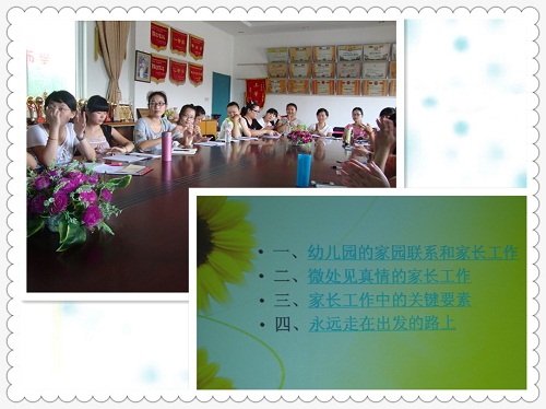 “五项修炼”从细节入手,结合了许多保教的实例,加以点评和建议,大家可以回想自己经历的教育事实,进行处理方式的对比,可以发现令人叹服的“闪光点”,使人印象深刻。细化的要求也体现在教师需要关注的保教各方面,虽然我们有了一些经验,但这远远不能满足日益严要求高标准的幼教行业,我们还需要从点滴入手,先踏实做好基础工作的每一步,学习和分享优质的教育资源,来扩展自己的认知和经验,再反过来指导并优化自己的教育实践。在家长工作方面,培训中也给了广大教育工作者“永远走在出发的路上”的寄语。我们既要关心爱护孩子在园的方方面面,也要和家长配合做好“家园共育”,共同促进孩子的身心健康和谐发展,这是我们工作的重中之重,立身之本。