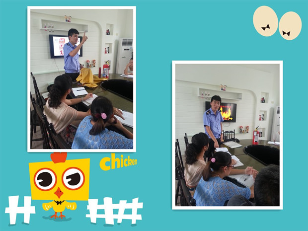 为进一步提高全园师生的消防安全意识,不断加强师生在发生火灾时的疏散逃生、自救能力,9月24日中午,在三楼会议室,张心诚教官为我园教职员工进行了“消防安全知识”培训。