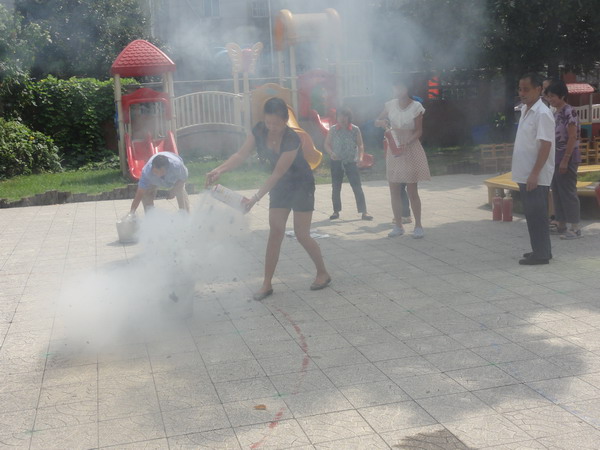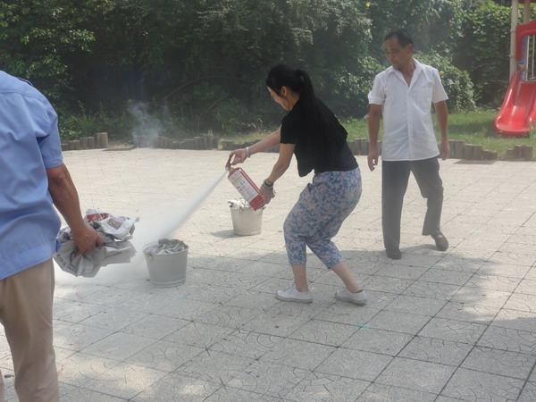 首先,钱老师向各位教师介绍了有关干粉灭火器的使用知识,强调了使用过程中的注意点,并对使用程序作了示范。随后,各位老师分别使用灭火器,进行了演练操作。教师们一致认为,这样的培训讲求实效、具有针对性,今后如遇危险就知道应变操作了。