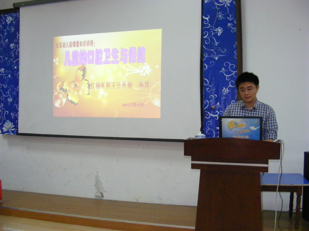 为了更好地预防幼儿龋齿的发生,提高家长对龋齿危害的进一步认识和重视,红梅东村幼儿园特邀红梅医院牙科主任杨烨医生对全体家长及老师作幼儿口腔保健知识讲座。