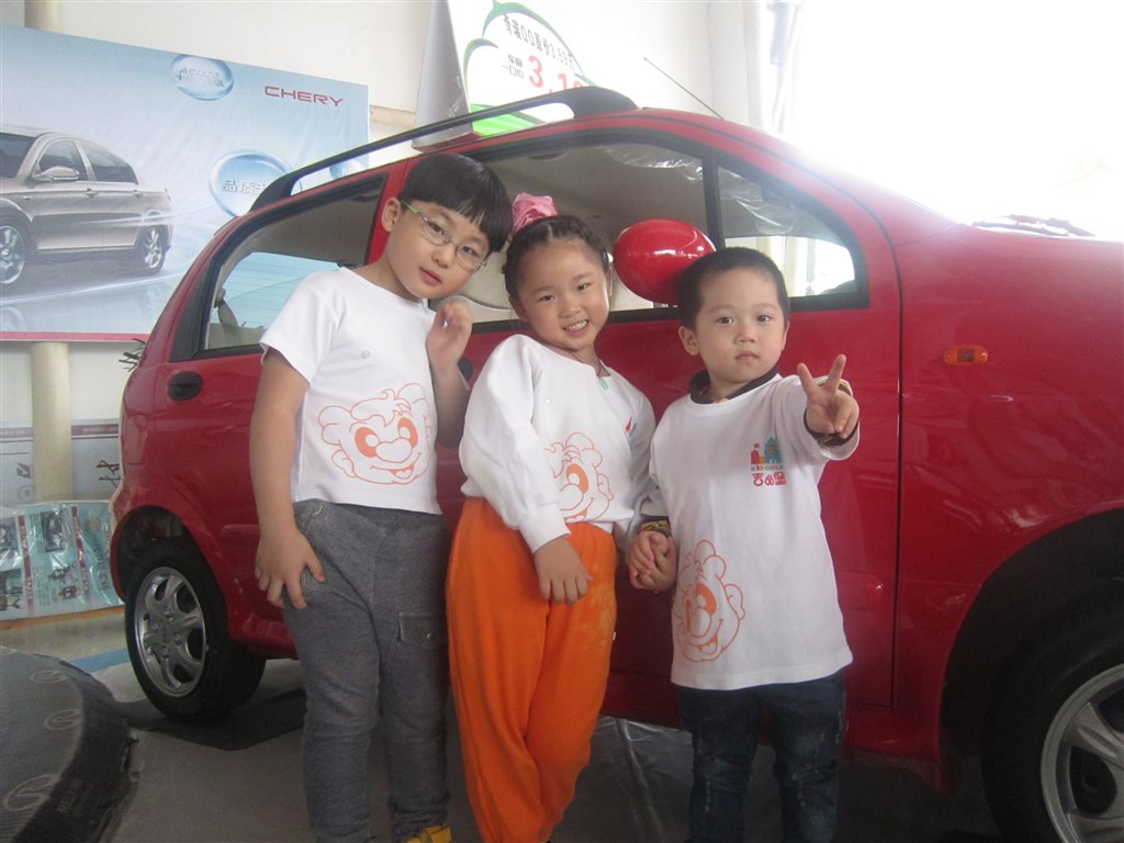 孩子们在期盼中很快就到达了4S店,那里的工作人员热情地接待了我们,由工作人员带着孩子们先参观了汽车内部的构造,让孩子们认识了发动机,雨刮器等部件,还介绍了汽车的安全配置、安全技术以及驾乘者需要掌握的安全驾驶知识。然后又领着孩子参观了几辆成型的新车,孩子们都忍不住跑上前去围着新车转一圈,一边说着“哇,好漂亮啊!”,一边时不时的用他们的小手摸两下。接着还让孩子们身体力行了一下,坐上小“QQ”,当起了小驾驶员。最后,孩子们带着工作人员发给他们的奖品,以及从这里获得的知识,“满载而归”……