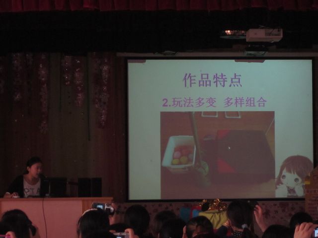 每位参评教师都对自制教玩具的创意、制作材料、具体操作等进行了现场讲解、展示。并播放相关视频,展现老师们是怎样通过巧妙的设计、丰富童趣的操作材料,让幼儿充分运用多种感官、多种方式进行探索、操作、学习的,怎样让幼儿在自由自主的活动中,学会合作、交流和分享的,她们真正做到了让孩子们在快乐中学习,在学习中体验快乐。