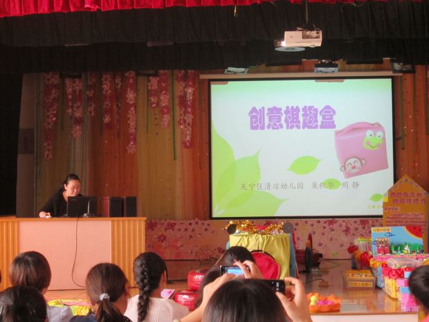 为了进一步推广优秀教玩具的制作理念和教育功能,常州市教育局教研室在近期特地组织了“自制教玩具交流培训活动”,清凉幼儿园教玩具《创意棋趣盒》的制作者巢秋华、周静作为优秀代表在交流活动上进行了经验分享。两位老师的制作心得和创作理念得到大家的认可和赞扬。