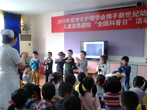 近日,在园领导的支持下,园所又一次携手常州市护理学会,开展了生动而精彩的儿童应急避险“全国科普日”活动。活动中,护理医师们从正确认识和防御自然灾害入手,通过图像向孩子们进行了生动、实在而有效的讲解。生活中的意外事故该如何处理?有哪些自我保护的方法……一个个安全小问号,带动的着一串串精彩的回答;一次次真诚的邀请,展现着一场场热烈的表演;一朵朵可爱的小花,打开一扇扇智慧的大门。孩子们在体验中学习,在鼓励中尝试,在互动中收获。