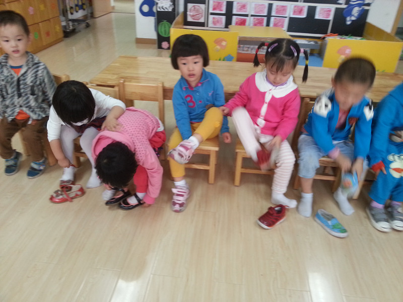 穿鞋是孩子们每日都要接触的活动。从比赛的结果可以看出,孩子们在幼儿园的生活中自理能力得到了提高,自我服务意识也得到了提升!