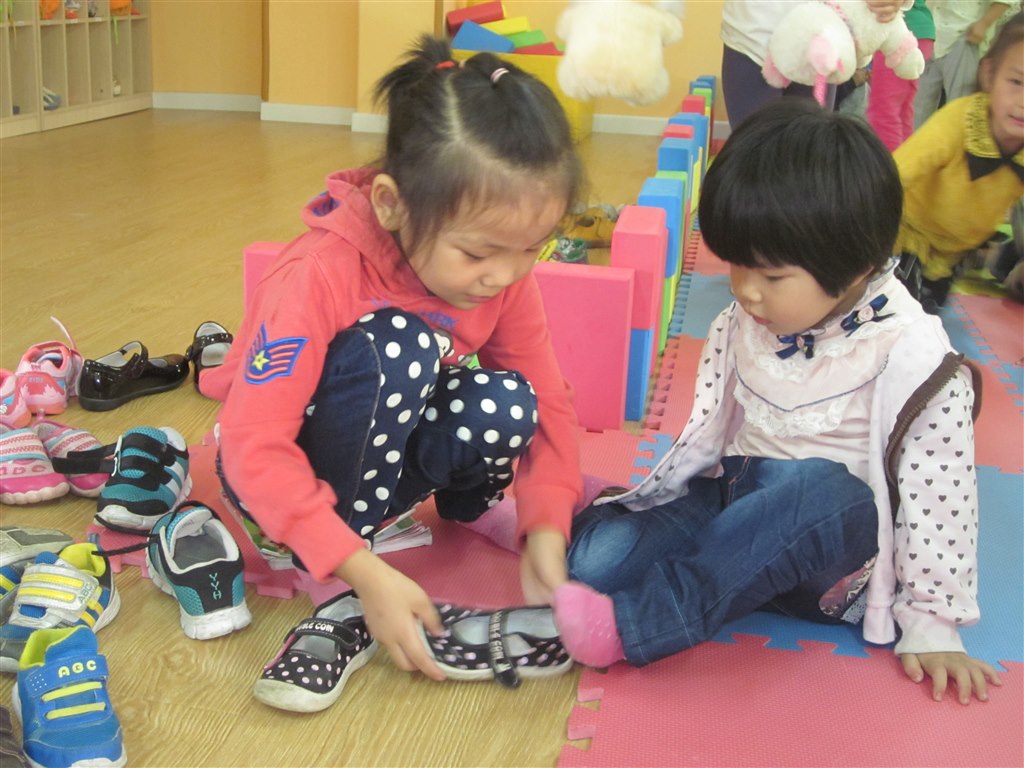 大班的小朋友们为弟弟妹妹表演了唱歌、讲故事、背三字经等精彩的节目,他们还给弟弟妹妹剥柚子吃,带弟弟妹妹一起分享自己的图书、玩具,还帮弟弟妹妹穿鞋,小班的小朋友们可开心啦!