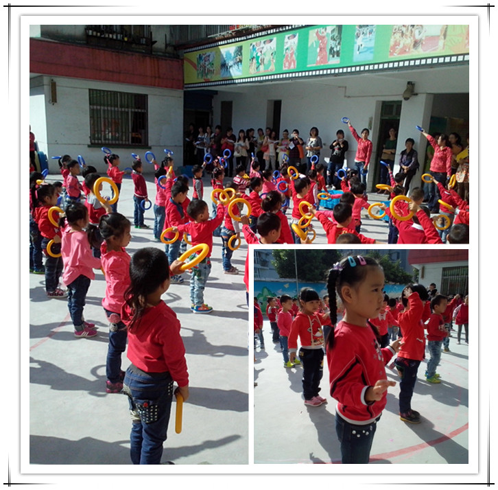 中班的小朋友们,拿着体操圈率先进行了展示。手中的体操圈时而是方向盘,时而又是搭楼房、钻山洞……他们动作整齐、轻快,队形变化丰富有序,充满了活力!