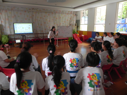 在丹桂飘香、喜迎收获的金秋时节,吉的堡幼儿园迎来了一年一度的总部巡园活动。清早,三位辅导老师一到园就观摩了我园的晨检、晨间活动及广播操等。在整整一天的巡园过程中,她们对一日生活的各个环节进行了巡查,首先仔细参观了我园的校园环境及班级环境,针对环境的主题性、互动性进行了的祥实的点评。接着,三位辅导老师深入班级课堂,观摩了课堂教学活动。在午休时间,她们围绕“电子白板在教学中的运用”对全体教师进行了专题培训,通过介绍电子白板的功能及使用,并结合课例的讲解,通过现场互动,让老师们初步掌握了电子白板的运用技巧,激发了老师们运用电子白板进行教学的兴趣。