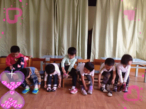 本次活动在各班举行,所有的孩子都要参加,分小组进行比赛。瞧,随着老师一声令下,有的孩子迅速地拿起自己的一只鞋子,快速地穿好,然后高高地举起小手向老师示意自己完成任务了;有的孩子动作缓慢,等穿好一看,反了,只好又脱下鞋子重新穿。虽然有的幼儿落后了,但他们仍然认真地穿着鞋子,脸上表现出不服输的表情。在一旁观战的幼儿给同伴们加油鼓劲,最终在大家的加油声中,所有的孩子们都穿好了鞋子,他们的小脸上露出了开心的微笑。