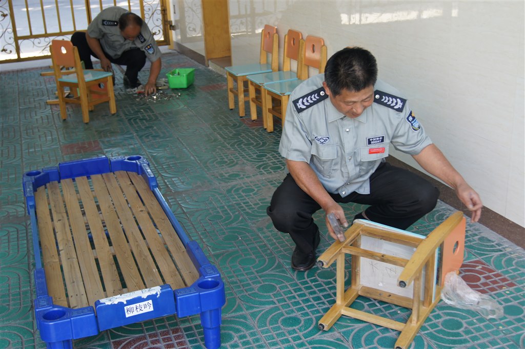 二是关注日常安全管理,尤其是在幼儿户外活动时,教师和保育员阿姨加强看护,始终将幼儿放在自己的视线之内,认真做好幼儿运动过程中的安全防护工作。 三是强化对幼儿园物品的检查与维修工作,幼儿园保安与门卫协助园方经常检查班级的桌椅与幼儿小床,发现松动的桌椅与小床及时进行维修,确保每位幼儿使用物品的牢固性与安全性。