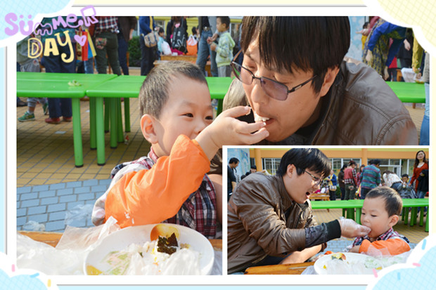 活动过程中,老师们首先向家长介绍了此次活动的流程与精神,在于积极响应习主席的号召“光盘行动”,让每个孩子都成为“光盘一族”,吃多少做多少。同时向家长提倡“光盘行动”,让家长们在家以身作则,做好孩子的榜样。活动中每组家庭都热情洋溢,五颜六色的蔬菜装饰,可爱的卡通造型,让孩子们兴奋不已。看着如此具有吸引力的爱心便当,孩子们个个食欲大开;看着一份份“光盘”,爸爸妈妈的脸上都洋溢出会心的笑容。