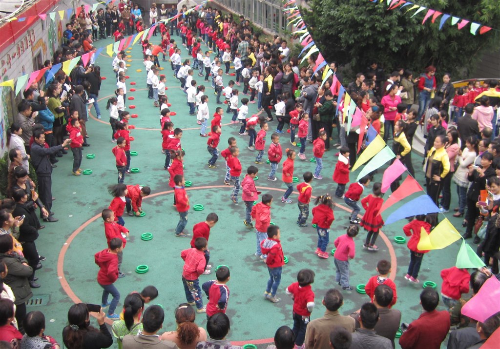 今天,朝阳的操场分外动力十足。数百位家长涌进幼儿园,一起观摩小中大班孩子早操律动比赛。